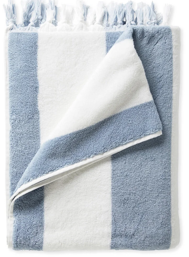 Can you tell I’m ready for summer yet? I stumbled across these beauties on the cover of the Serena & Lily catalog I got in the mail this month and I was immediately smitten. I love the classic look of these towels, and the fringed edge adds a fun twist that makes them feel more elegant than.. dare I say.. cruise towels? They come in a ton of other colors too, but this blue color is my absolute favorite.
